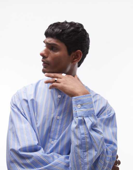 Topman - Camicia a maniche lunghe oversize blu a righe