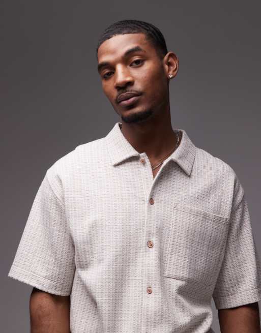Topman - Camicia comoda in jersey écru testurizzata a righe con bottoni