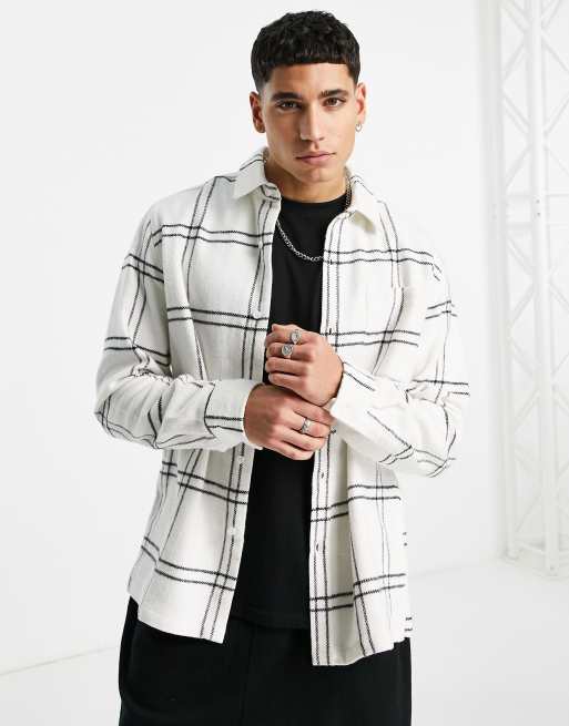 Topman - Camicia con orlo dritto in bianco sporco con stampa a quadri larghi