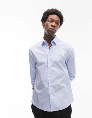 Topman - Camicia elasticizzata blu a maniche lunghe
