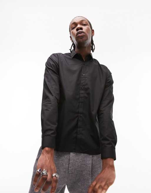 Topman - Camicia elegante a maniche lunghe slim fit nera