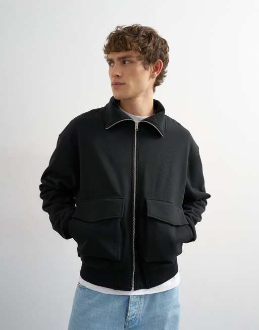 Topman - Camicia giacca comoda multitasche in jersey nera con collo a imbuto