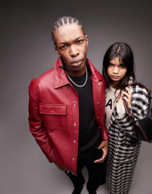 Topman - Camicia giacca in pelle sintetica bordeaux