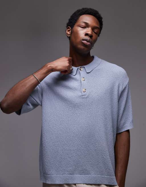Topman - Camicia in maglia bouclé blu con bottoni