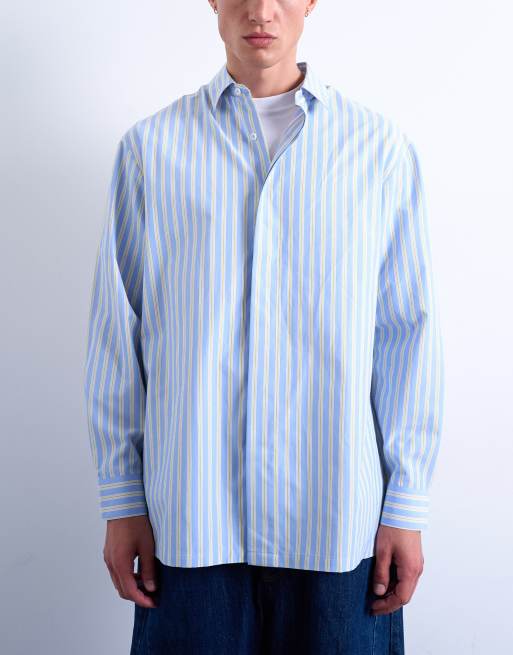 Topman - Camicia oversize a maniche lunghe azzurra e gialla a righe