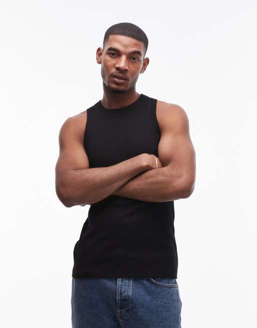 Topman - Canotta aderente a coste accollata nera