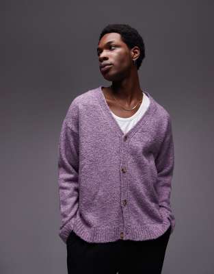 Topman - Cardigan comodo in tessuto bouclé lilla