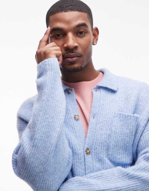Topman - Cardigan comodo spazzolato azzurro con colletto