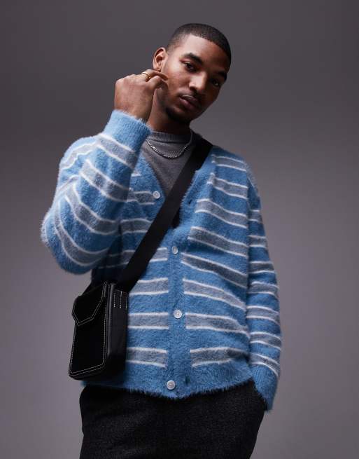 Topman - Cardigan comodo spazzolato blu e bianco a righe