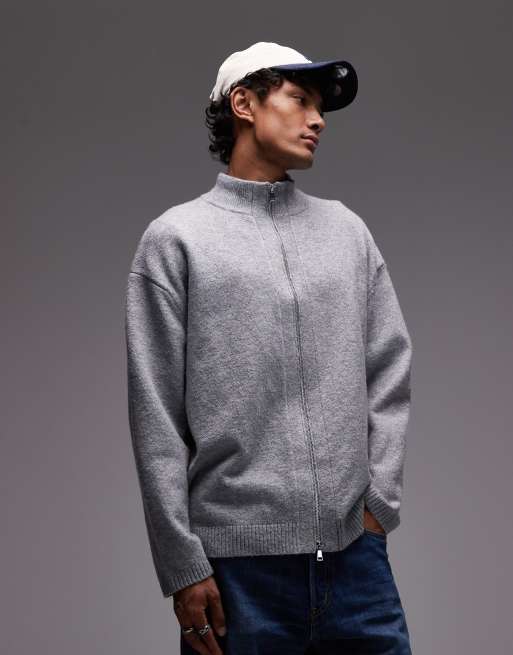 Topman - Cardigan grigio con zip doppia e collo a imbuto