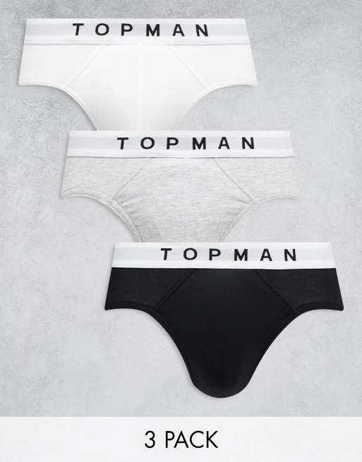 Topman - Confezione da 3 slip neri, bianchi e grigio mélange con fascia in vita bianca