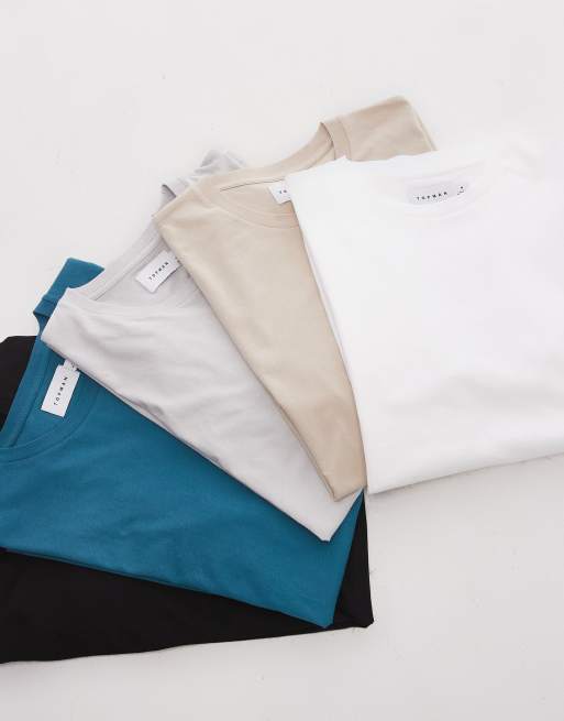 Topman - Confezione da 5 T-shirt classiche nera, blu, grigio mélange, color pietra e bianca