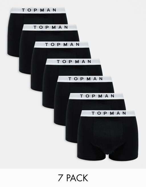 Topman - Confezione da 7 paia di boxer aderenti neri con fascia in vita bianca