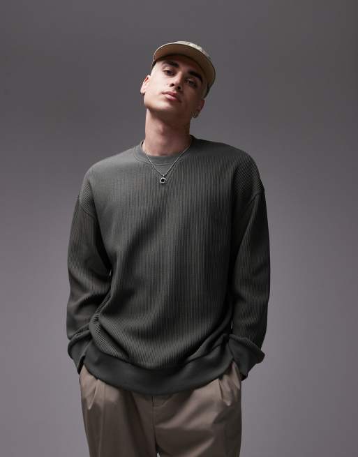 Topman - Felpa girocollo oversize in ottoman verde scuro