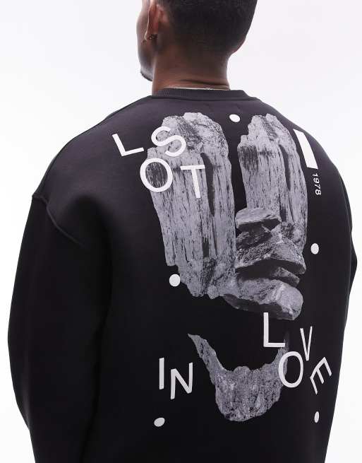 Topman - Felpa oversize nera con stampa Lost in Love sul davanti e sul retro
