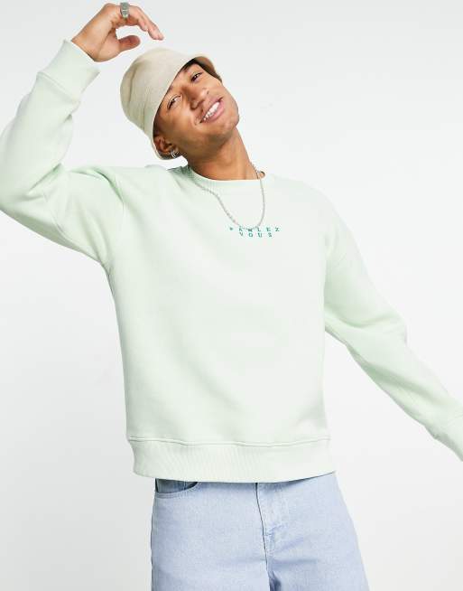 Topman - Felpa oversize salvia con ricamo "Parlez Vous"