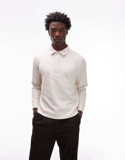Topman - Felpa stile polo squadrata écru testurizzata con maniche raglan