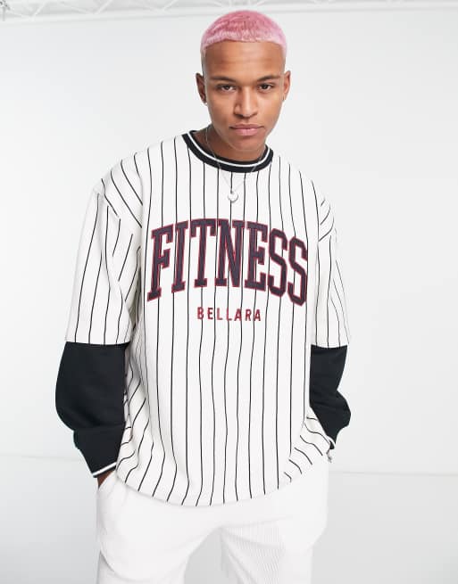 Topman - Felpa super oversize a strati con stampa “Fitness” bianca