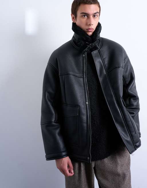 Topman - Giacca in montone sintetico nera con tasche applicate