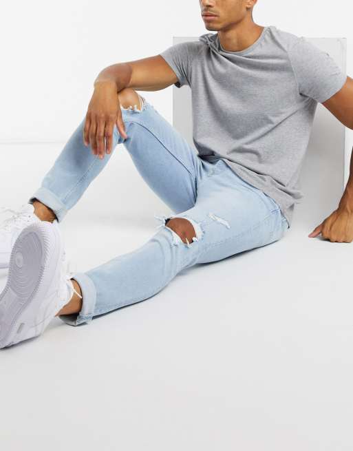 Topman - Jeans skinny elasticizzati con strappi lavaggio blu candeggiato