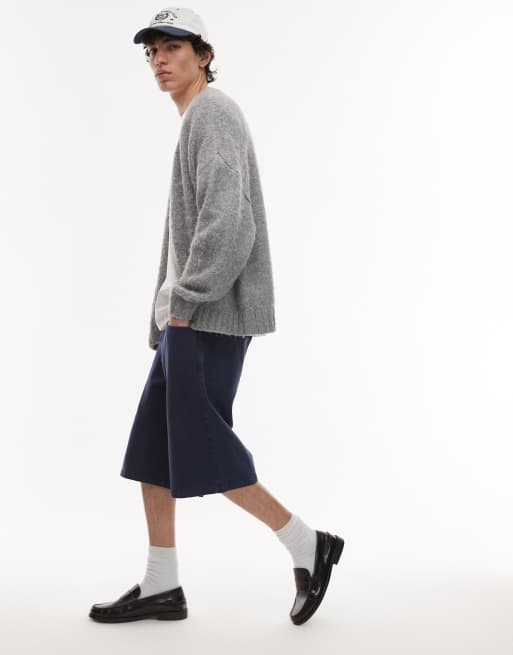 Topman - Pantaloncini blu navy slavato in twill