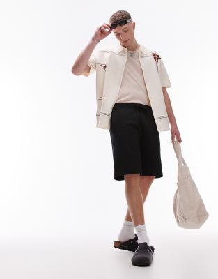 Topman - Pantaloncini premium oversize in jersey pesante neri
