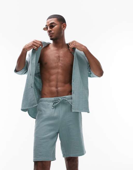 Topman - Pantaloncini salvia slavato in coordinato