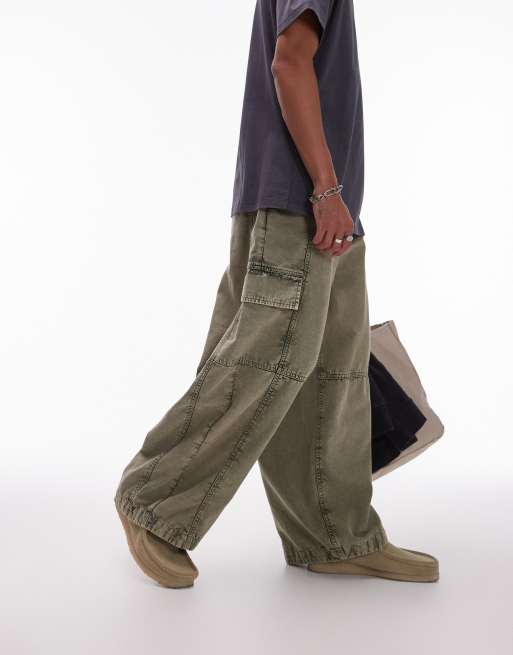 Topman - Pantaloni cargo kaki slavato con fondo ampio