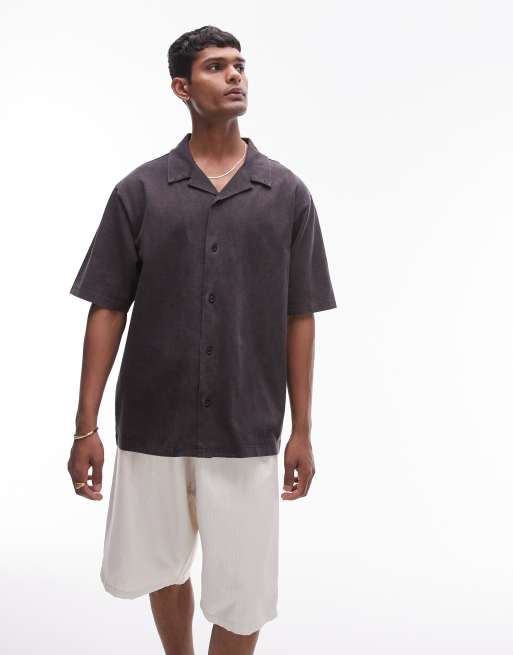 Topman - Polo comoda in jersey nero slavato con bottoni