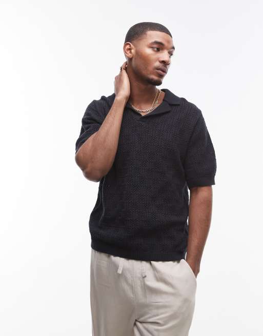 Topman - Polo nera con trama all'uncinetto