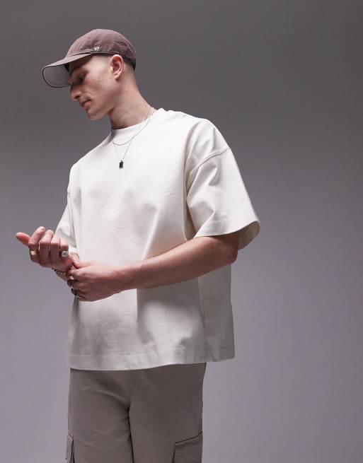 Topman - T-shirt comoda premium pesante 370 gsm con spalle scivolate écru