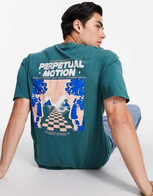 Topman - T-shirt con stampa sul davanti e sul retro verde slavato