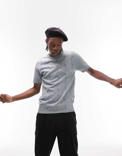 Topman - T-shirt di maglia con cuciture a vista color salvia