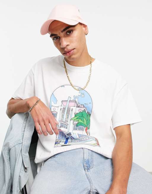 Topman - T-shirt oversize bianca con stampa "Miami beach"