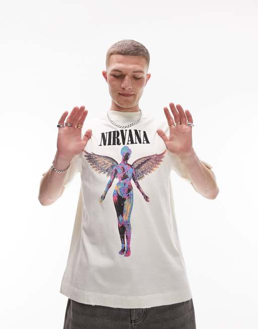 Topman - T-shirt oversize écru con stampa "Nirvana Angel"