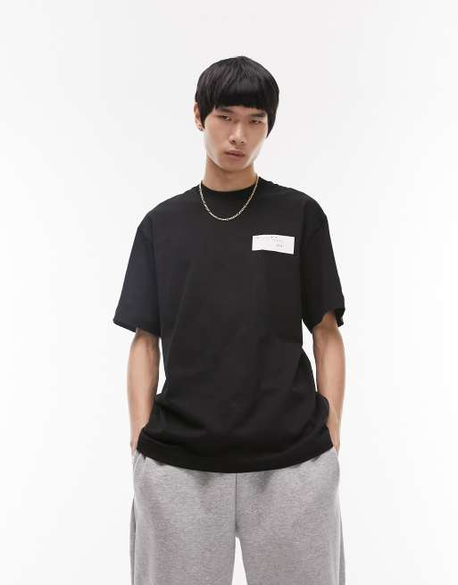 Topman - T-shirt oversize nera con stampa "Paris" sul davanti e sul retro