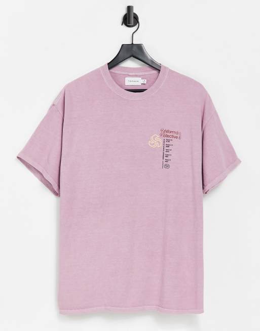 Topman - T-shirt oversize rosa con stampa "Uniform Collective" sul petto