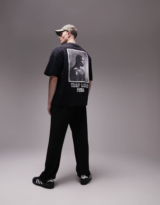 Topman - T-shirt super oversize nera con stampa di "A$APFerg" sul davanti e sul retro