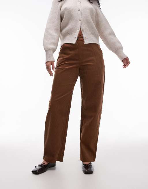 Topshop Hourglass - Pantaloni marroni in velluto a coste con gamba cilindrica