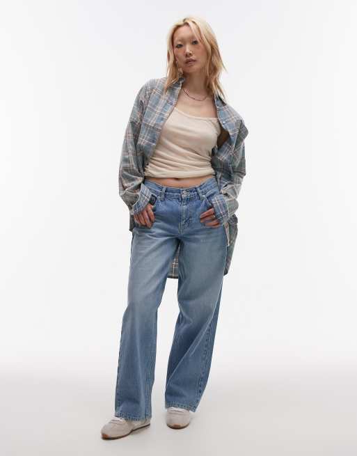Topshop Petite - Cinch - Jeans comodi a vita bassa lavaggio candeggiato