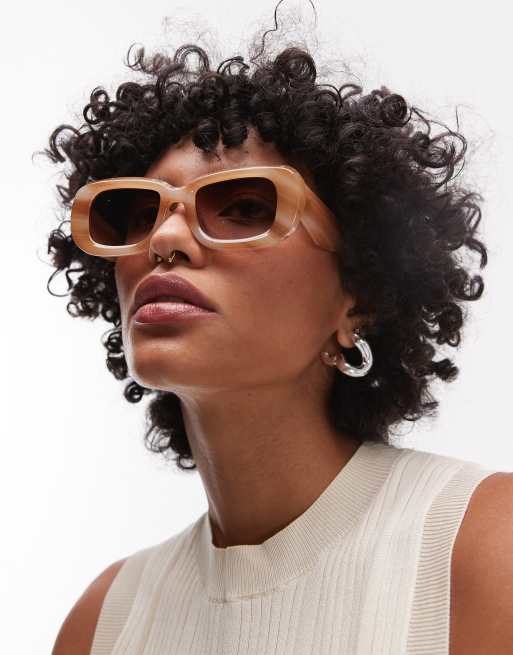 Topshop - Athens - Occhiali da sole rettangolari marroni