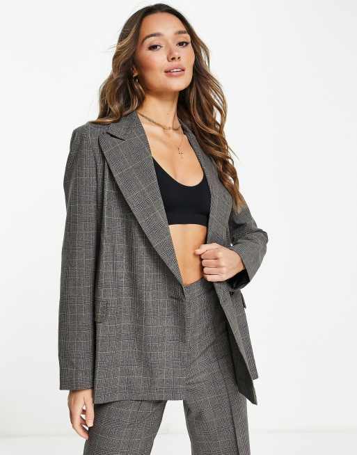 Topshop - Blazer avvolgente doppiopetto marrone a quadri