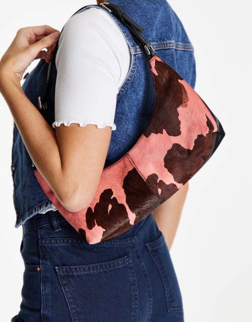 Topshop - Borsa da spalla in pelle con stampa pezzata