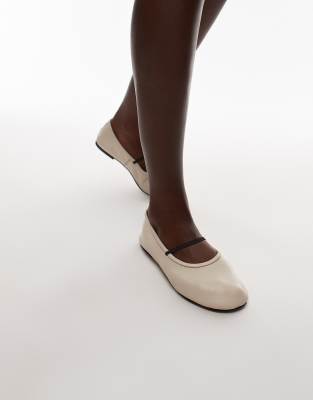 Topshop - Brad - Ballerine bianco sporco in pelle con fascette elasticizzate