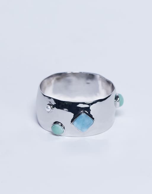 Topshop - Bree - Bracciale rigido grande argentato con pietre