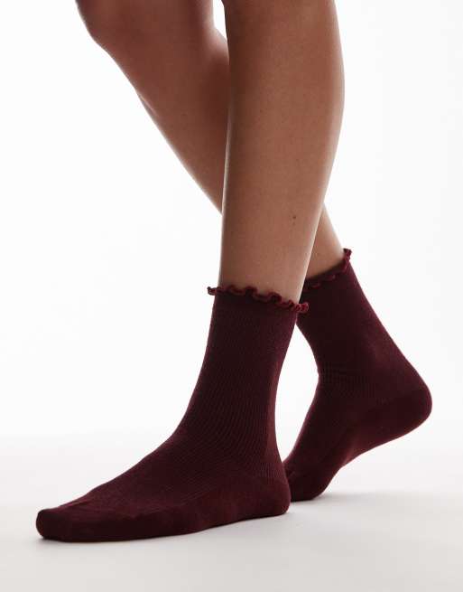 Topshop - Calzini a coste bordeaux con volant sul bordo