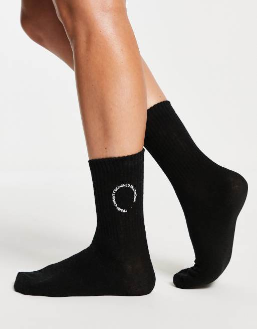 Topshop - Calzini neri a coste con logo