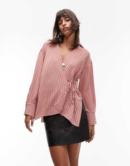 Topshop - Camicia a portafoglio rosa a righe nere