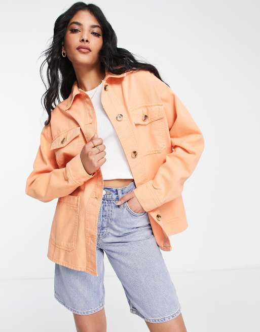 Topshop - Camicia giacca oversize a maniche lunghe arancione con etichetta in tessuto con logo