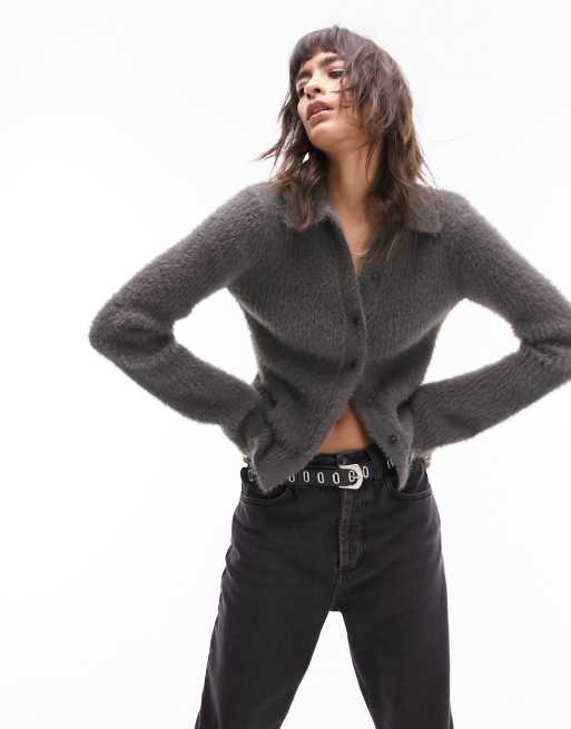 Topshop - Camicia in maglia soffice antracite con colletto